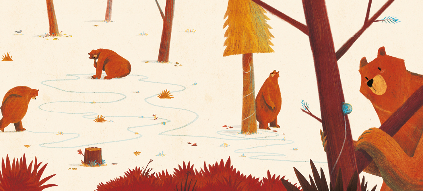 Ein Bär und ein Schneck lebten im selben Wald. Beide zählten gerne die Bäume, beide schauten gern zu den Gipfeln ferner Berge, und beide fraßen für ihr Leben gern. Aber der Bär und der Schneck redeten nie miteinander.