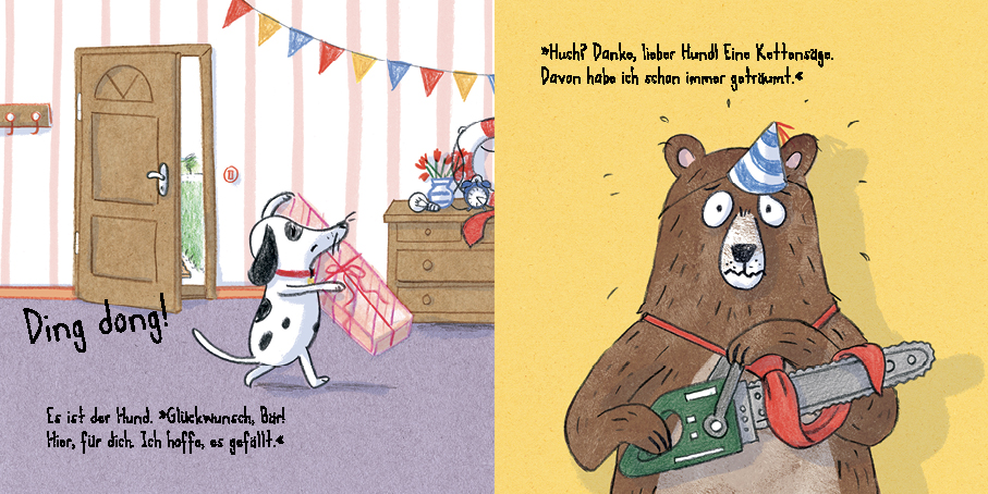 Bär hat Geburtstag und wartet aufgeregt auf seine Gäste, denn er wünscht sich sehnlichst ...