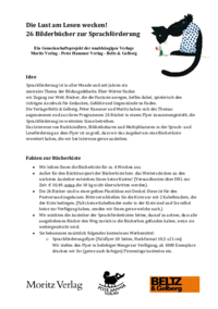 Die Lust am Lesen wecken! 26 Bilderbücher zur Sprachförderung Ein Gemeinschaftsprojekt der unabhängigen Verlage Moritz Verlag - Peter Hammer Verlag - Beltz & Gelberg Idee Sprachförderung ist in aller Munde und seit Jahren ein zentrales Thema der…